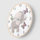 Cute minimalist wall clock features baby elephant and butterflies, perfect decor item for nursery. Personalize with baby's name or personal message. A perfect gift with purpose.