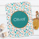 Cute and colorful baby blanket with a background of music notes, clefs, and floral elements. Customize with your preferred name or text. Fun baby gift idea for a musician, music teacher, or band director!
