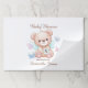 Celebrate the mom-to-be with a cute bear and butterflies personalized baby shower placemat. This paper pad placemat features the special event name along with the name of the mom-to-be as well as her monogram. Use the template to personalize.