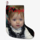 Perfect! Exactly what I ordered! I uploaded a picture of my blue chow, and the screen print was incredible. the back side of the stocking was the red and black checkered print. my puppy's name was also printed on the cuff of the stocking. PERFECT! Highly recommend this product! My puppy's name was screen printed onto the cuff of the stocking, the font was perfect!