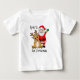 Baby's first Christmas one piece tee. Cute cartoon hand drawn Santa and Reindeer graphics and the ability to customize the name.