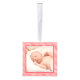 Commemorate your baby's first Christmas with this personalized baby ornament. You can customize this with a photo of your baby, your baby's name and initial, and your baby's birth statistics (i.e., weight, height, date of birth and time of birth). If you choose, you can further customize the top or bottom of the ornament with your own personal message.