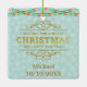 The back of the ornament carries a heartfelt greeting: "WISHING YOU A MERRY CHRISTMAS AND HAPPY NEW YEAR" in elegant, shimmering gold script and flourishes, set against a soft mint green background adorned with subtle snowflakes. There's ample space for personalization, including a name and a significant date. making it perfect for baby's first Christmas, a new arrival, or a commemorative holiday gift.