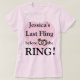 Last Fling Before the Ring - Fun Bachelorette party t-shirts & buttons for the bride's last night out! Personalize with the Bride's name in the space provided. Available on any style or color t-shirt, tank top, camisole or shirt!