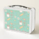 Make lunchtime extra fun and personal with this custom metal lunchbox featuring a vibrant back-to-school design! Adorned with colorful pencils, smiley faces, stars, notebook paper, flowers, and apples, this cheerful design is perfect for students who want to carry a bit of joy with their meals.