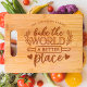The "Bake the World a Better Place" cutting board brings a spoonful of optimism and a dash of charm to any kitchen. This thoughtful piece, which can be personalized with a family name, encapsulates the belief that baking goes beyond mere sustenance—it's a way to spread joy and kindness. Whether used for rolling out cookie dough or chopping apples for a classic pie, it serves as a daily encouragement to create and share the sweetness of home-baked goods with others. It's a beautiful reminder that every batch from the oven has the power to warm hearts and bring smiles, making the world feel just a bit more welcoming.