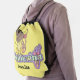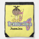 Ballerina and Slippers drawstring backpack bag, so cute, perfect for little girls who go to dance class, who love ballet, who love to dance! Features a little African American girl ballerina in yellow tutu holding a pair of pink ballet slippers and sitting on text that reads Ballerina! There's an area you can personalize by adding her name! The background is yellow but you can change it to whatever color you like!
