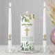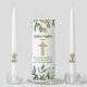 Personalized baptism candle set with greenery, cross and blessing for boys or girls.