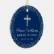 Personalized Baptism Christening Navy Blue Silver Ceramic Ornament