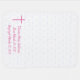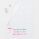 Adorable Personalized Baptismal Blanket design features a unique patterned background to a lovely pink cross which is located to the left of child's name, date of birth and date of Baptism.