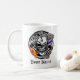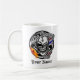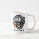 Add your name to this coffee cup which features a cool Barber Skulll with his flaming electric razor and Barber Pole in front of a metallic-like circular frame. Entitled "The Barber," this product is a great gift for any Barber, hairstylist, your friendly neighborhood Barber Shop owner, or anyone with a fierce passion for cutting or styling hair. Customization tool allows you to add text or change background colors to meet your personal style. Visit www.zazzle.com/barberskull to see more cool barber themed skulls on many more different products.