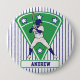 Personalized blue and white baseball star design showing a batter taking a swing in a blue and white baseball jersey uniform with a green baseball field green diamond with blue and white stars in the background. This can be fully personalized with the name of your choice.