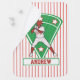 A personalized baseball design featuring a baseball batter taking a swing in a red and white baseball jersey uniform with a green baseball field green diamond design with red and white stars in the background on a pattern of red and white stripes. This can be fully personalized with the name of thee baseball player, baseball fan or baseball coach or any other text of your choice.