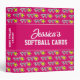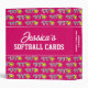 Personalized baseball card binder for collectors (no sleeves). Customizable name on front and custom pink background color. Organize your sports player card collection. Cute athletic theme Birthday gift idea for sporty girls. Also handy for school and other kids' activities.