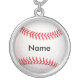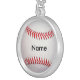 This sterling silver necklace features an image of a classic baseball in a sterling silver frame and the name of your choice.