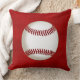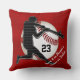 Personalized Baseball Throw Pillows with YOUR TEXT. Type in your team and or each player's NAMES and NUMBER or the Year or YOUR TEXT or just Delete the temporary text. Red baseball pillow with white baseball and techno baseball player silhouette. CALL Linda for design or color changes at : 239-949-9090