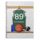 green and white basketball jersey hanging in a locker room with a basketball , basketball sneakers and a drinks bottle. The jersey is customizable with your own numbers and name, to create a truly unique gift for the Basketball player or basketball fan. If you require a different color combination contact us via the store
