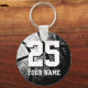 Personalized basketball keychain | name and number. Lucky Number 25 basketball keychains. Personalizable name and jersey number. Cool sports gift idea for basketball players and fans. Cute present for kids little league team boys and girls. Black and white photo.
