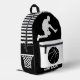 Score big with this bold and sporty black and white left-handed basketball backpack for boys, featuring a powerful basketball player silhouette on the front. Whether heading to school, summer camp, a weekend sleepover, sport, basketball practice or travel, this custom backpack is built for comfort, style, and performance.
