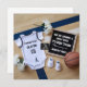 A delightful cute basket ball player themed pregnancy announcement featuring a baby body suit jersey and a letter board announcing the big news customizable