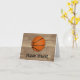 Stylish wood floor graphic background in light brown, with a dark orange textured look basketball, personalized with the kids, team or coach name.