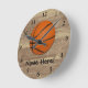 Stylish wood floor graphic background in light brown, with a dark orange textured look basketball, personalized with the kids, team or coach name.