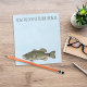 This personalized bass fishing lake life desk stationery features a detailed freshwater bass illustration on a soft blue background with a custom “From the Desk Of” name header. Perfect for fishermen, anglers, outdoor enthusiasts, lake house owners, or anyone who loves fishing and country living. A thoughtful gift for dads, grandpas, teachers, or fishing buddies who enjoy rustic, outdoors-inspired paper goods.