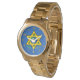 Stunning Personalized Bat Mitzvah Gifts Ideas or any special occasion for her or him. Star of David Watches for Women, Men and Children. Change the Blue Background and Green and Yellow Text to ANY COLORS. Click the Customize Button to make Color and Text Changes. Type in Her NAME and DATE or Your Text or Delete the Temporary Text. CALL Designer Linda: 239-949-9090, to make changes for you or help you on the phone to make the changes. Beautiful Star of David with Faux Stained Glass and Yellow Gold Star. Choose from Several Womens, Mens and Children's Watch Styles in a variety of colors and styles.