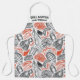 A fun apron featuring a vintage pattern of various bbq meats. Add two lines of custom text to personalize. Perfect for anyone who loves to barbecue and grilling meats - great for butchers too.