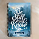 Calm your heart with this peaceful watercolor lake scene at twilight, featuring the scripture 'Be Still and Know' in flowing script. personalized with name.