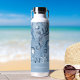 This personalized water bottle is perfect for a day at the beach, with a coastal pattern in classic shades of blue features a variety of sea creatures such as sea horses, jellyfish, coral, starfish, seaweed, and shells.