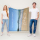 Add coastal style to your home with this personalized fleece throw blanket. The design features a one-of-a-kind photograph of the tranquil blue waves and soft sand of Seal Rocks, off the coast of Sydney, Australia. The modern, white text is customizable so you can add your own family name.