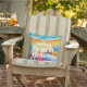 "Beach House" and your family name highlight this pattern of waves on a sandy beach and sunbathers under colorful umbrellas, this design is a fun addition to your summer outdoor decor. MATCHING items in our store.
