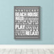 Trendy beach themed wall art in a soft dove gray with lettering in white. Customize with your family name or favorite seaside location and let everyone know the "rules" of the beach house that need to be followed. From building sandcastles to searching for seashells, the order of the day is to RELAX!