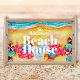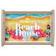 "Beach House" and your family name highlights this serving tray with a pattern of waves on a sandy beach and sunbathers under colorful umbrellas. This design is a fun addition to your summer decor. MATCHING items in our store.