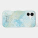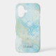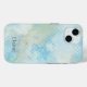 Phone case featuring a grunge beach inspired checkered pattern in turquoise blue, off white and pale green, with your own custom text or monogram (optional). You can rotate or scale the design if you like!