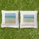 Pretty beach scene painting with gentle waves, with placeholders for team names, are printed on custom cornhole game bags. The text Team 1 and Team 2 can easily be customized on the bags. The text is written in the sand in a similar color as the ocean. Thank you for shopping at CherylsArt on Zazzle.