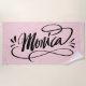 Personalized beach towel gift with the name Monica. Trendy artistic script hand lettering design with swirly swirls. Cool Birthday gift idea for friends and family. Stylish hand lettered calligraphy design artwork. Exclusive hand-drawn present for her. Pink or custom color. Want something for your own name. Please leave a message in the chat.