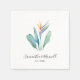 Add a vibrant touch to your beach wedding in Florida with these personalized tropical napkins, featuring original watercolor artwork of bird of paradise flowers and lush palm leaf party napkins design. With bold shades of orange, turquoise, and green, these custom wedding napkins bring elegant island flair to any celebration.