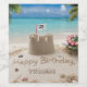 Celebrate in style with a custom beach-themed birthday design featuring your age and name written in the sand. This tropical design includes a scenic beach backdrop, colorful seashells, making it the perfect greeting for anyone who loves the sun, sand, and sea. Ideal for milestone birthdays or casual beach lovers!