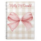 Personalized beige checkered pattern with pink bow notebook