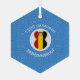 An angel dressed in the flag of Belgium on a hexagon shaped glass ornament for Hanukkah. This Hanukkah decor is designed, especially, for families of multiple religions. The Belgian flag angel flies in the center of a circle of white squiggly squares surrounded by a background of blue squiggly squares. Personalize with a name. Customize with the year. You can, also, change the text to whatever you wish.