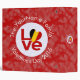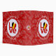 The Belgian LOVE FLAG. Like the others in Auntie Shoe's The LOVE Series, the word LOVE is featured in red letters inside a white, fractal-style circle. The circle sits on a red, fractal-style background. Perfect for Valentine's Day or any special time.