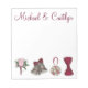 I imported the same design from a collection that I used for my daughter's bridal shower invitation and applied it to this notepad. I added a custom font and question to the notepad... John holds the key to Elaine's heart. How many keys are in the jar? I had hundreds of miniature vintage keys in a jar. The notepad had tear off sheets, so little cards weren't falling all over the floor or being left on tables. Any extra pages, I used the back as a notepad for myself :)