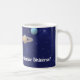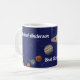 Personalized Best Dad in the Universe! design features an image of the solar system as background to your text. Top left text displays dad's name in white lettering, lower right text reads, "Best Dad in the Universe!". All text is customizable.