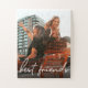Personalize this puzzle with your favorite photo of your best friend. Give a gift that will bring back memories and cherished as a keepsake between friends. Customize this template easily with your own photo. White overlay script, modern type for the word "best friends"