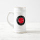 Simple, modern, elegant, vibrant red and black wedding beer stein Best Man gift with monogram - initials, name, unique romantic love couple birds drawing and trendy handwritten calligraphy script.