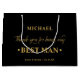Personalized Best Man Black and Gold Thank You Large Gift Bag