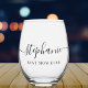 Personalized Best Mom Ever Script Monogram Stemless Wine Glass. Easy to customize all text.