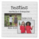 A modern white BEST FRIENDS two-photo memory canvas. The main heading reads BESTIES and the design is to celebrate the faithfulness of a friendship through the years. Upload your THEN photo, eg. from school, maybe?, and a NOW photo of a recent get-together. ALL TEXT IS CUSTOMIZABLE, so you can change and/or delete. There are also customizable placeholder names, which you can replace with your name(s) and/or special date or event. In the background, BEST FRIENDS FOREVER is written in a tiled pattern in a subtle color. Matching gifts are available.